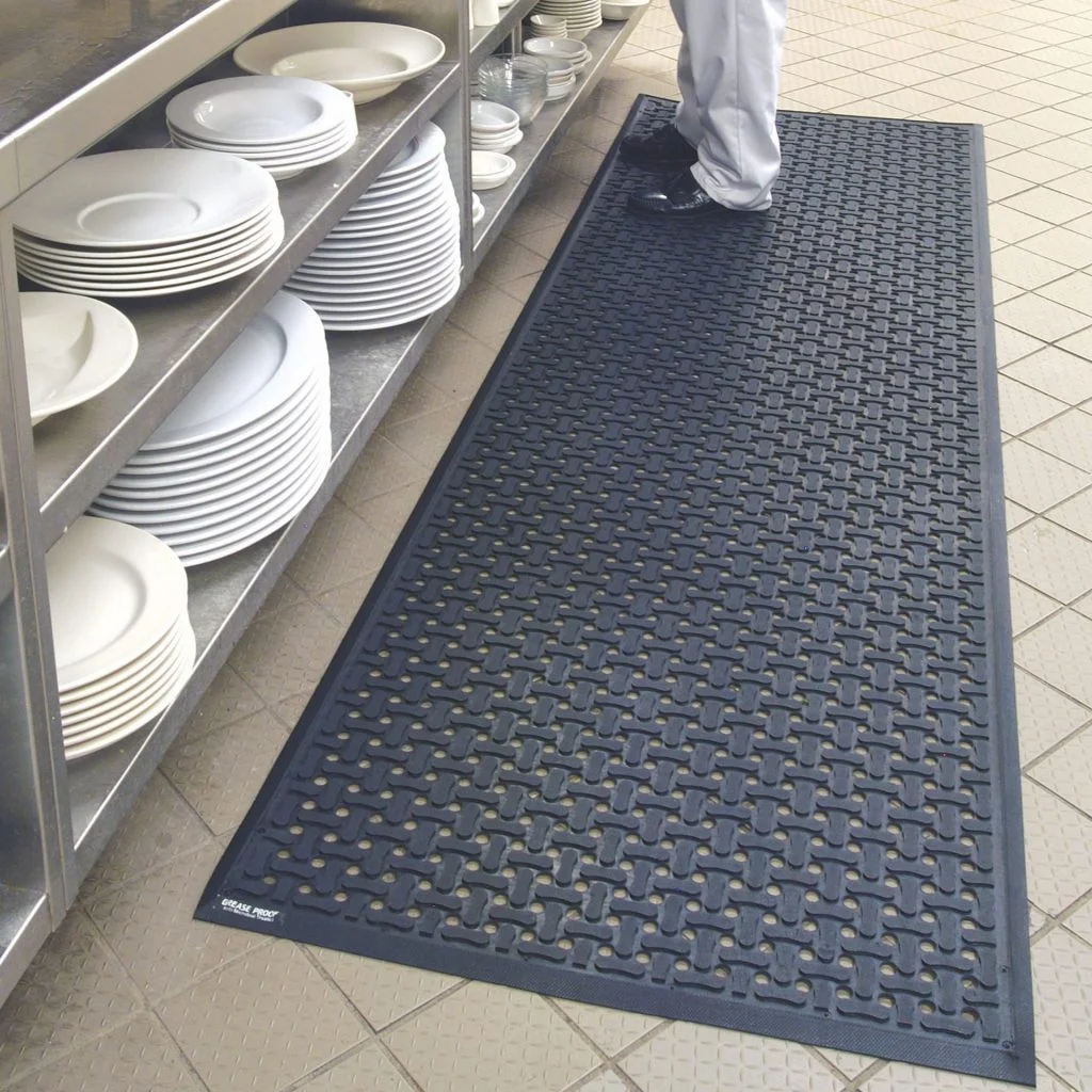 Gummimatten gibt es in den verschiedensten Ausführungen und finden ihre Verwendung in vielen Bereichen der Industrie, Fertigung, Handwerk und Landwirtschaft, aber auch in stark beanspruchten Eingängen öffentlicher Gebäude. Ringgummi- oder Gummiwabenmatten garantieren dauerhaften Einsatz selbst bei Schnee und Eis. Gummioberflächen gewährleisten Rutschsicherheit und vermeiden Unfälle, gerade in Bereichen mit viel Feuchtigkeit und Nässe. Durch die stoß- und schalldämpfenden Eigenschaften eignen sich Gummimatten hervorragend als Arbeitsplatzmatten, Anti-Ermüdungsmatten (Anti-fatigue-Matten), Fallschutzmatten oder als Unterlage für Waschmaschinen und Fitnessgeräte. Matten aus Gummigranulat finden ebenfalls Einsatz als Gummi-Ausgleichsmatte, um Höhenunterschiede auszugleichen.